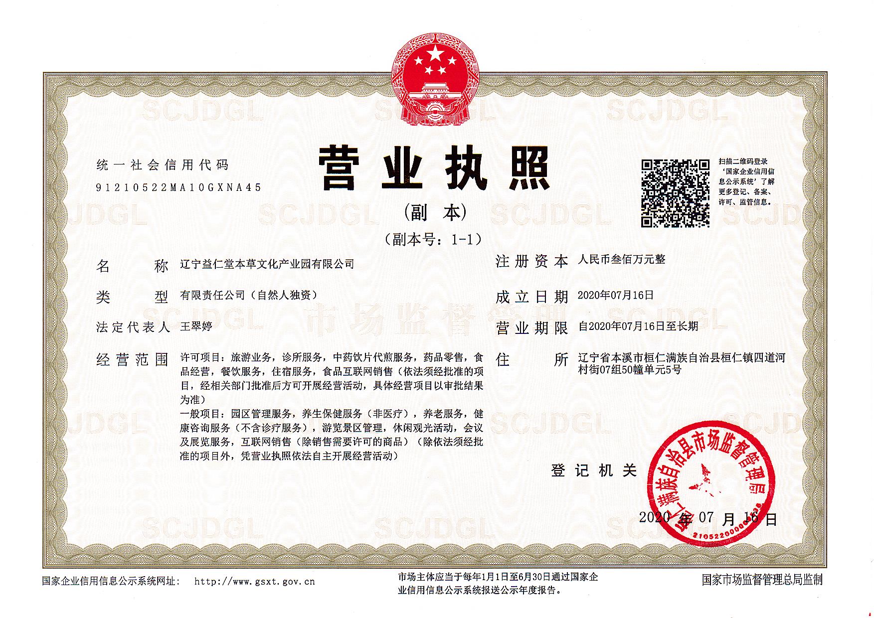 我公司成立遼寧益仁堂本草文化產業園有限公司,打造國醫國藥文化,膳食康養旅居,中醫健康養生及中醫文化科普為一體的3A級景區